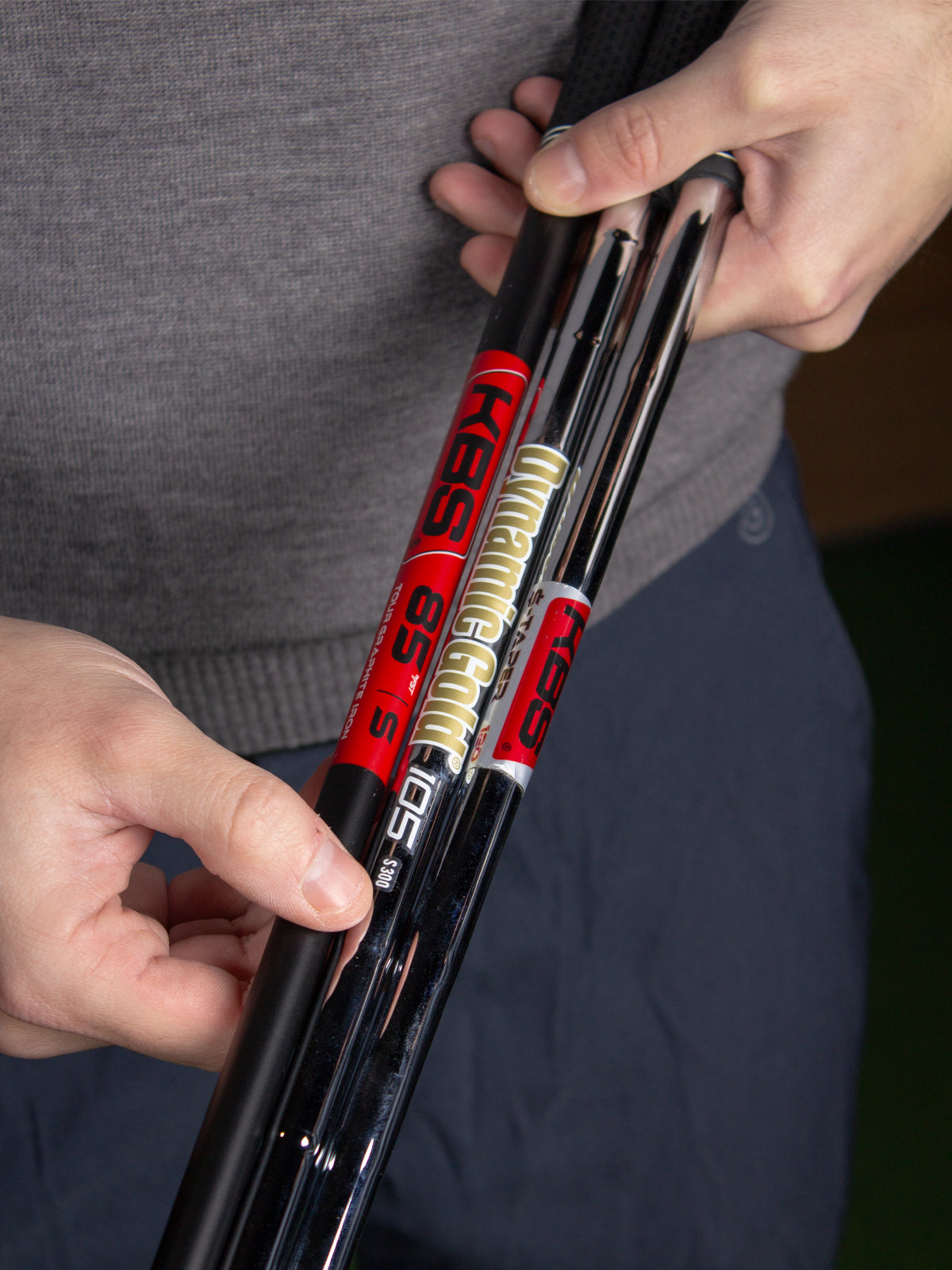 Når vi har fundet en model, der passer til dig og dit sving, kigger vi på, hvilket skaft der vil passe bedst. Vi leger med skafternes stivhed, hvor vi især tager højde for tempo og svinghastighed. Samtidig kigger vi på boldflugten for at se, hvordan forskellige skafter påvirker den. Der findes et bredt udvalg af skafter i både stål og grafit. Målet er at finde et skaft, der føles behageligt at svinge, har en god balance og vægt, og som passer til dit sving.