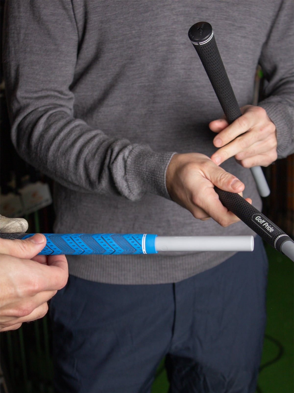 Når model og skaft er på plads, kan vi kigge på det sidste element – grebet. Der findes efterhånden mange forskellige typer greb, som du kan vælge imellem, uanset om du foretrækker noget blødt, fast eller med mere eller mindre "klistret" overflade. Grebene fås også i forskellige størrelser, hvor størrelsen på din hånd og din personlige fornemmelse er afgørende. Vi guider dig gennem de forskellige muligheder og hjælper med at vurdere fordele og ulemper ved de forskellige greb.