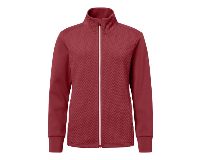 Anne Midlayer Jacket til kvinder kombinerer stil, varme og funktionalitet. Fremstillet i blød, strækbar fleece med smuk strikket tekstur og stretchpaneler på ærmer, sider og skuldre for optimal pasform og bevægelsesfrihed. Jakken har fuld lynlås foran og to lynlåslommer til praktisk opbevaring, mens diskrete Abacus-logoer på venstre ærme og bag nakken tilføjer et elegant touch. Åndbar og fugttransporterende, perfekt til golf og udendørs aktiviteter.