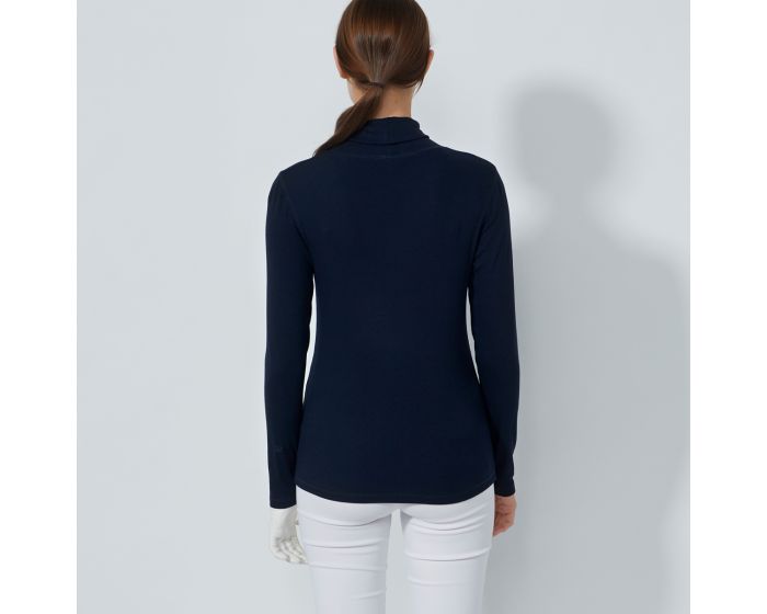 Daily Sports Ancona er en langærmet roll-neck top i blødt og elastisk ribstof, designet til at give varme og komfort på kølige dage. Den høje hals tilføjer et stilfuldt touch, mens materialets stræk sikrer bevægelsesfrihed og en flatterende pasform. Toppen er ideel både på golfbanen og til hverdagsbrug, og det hurtigtørrende materiale gør den praktisk til aktive dage.
