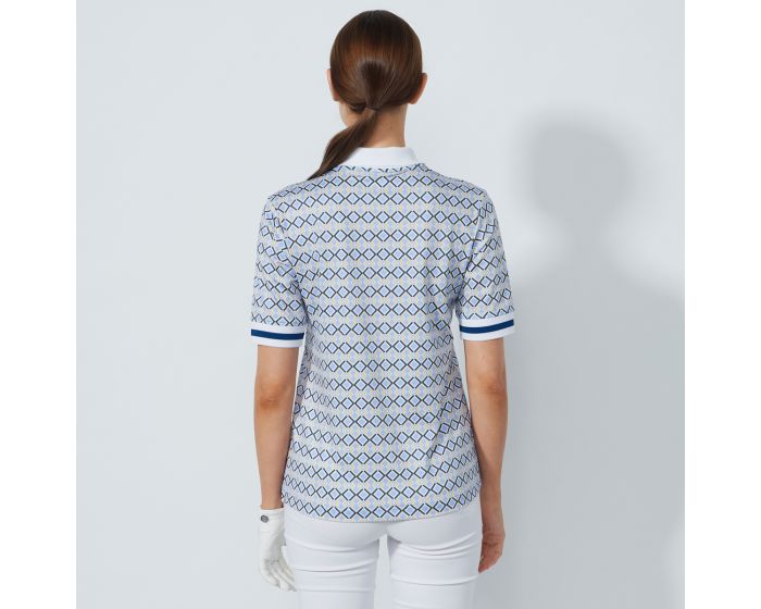 Daily Sports Printed Short-Sleeved Top kombinerer en skræddersyet pasform med funktionelle performance-egenskaber. Den er fremstillet i strækbar, printet single jersey med Quick Dry og fugttransporterende egenskaber, som sikrer komfort og bevægelsesfrihed i hvert sving. Det all-over print giver et moderne udtryk, mens den ensfarvede ribkrave og de stribede ribmanchetter fuldender det stilrene look.