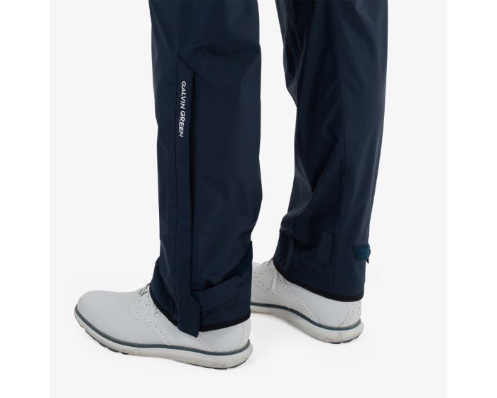 Galvin Green April er regnbukser fra DRYVR™-kollektionen, udviklet til at holde dig tør og komfortabel under kolde og våde runder. De er fremstillet i genanvendt polyester med næste generations GORE-TEX ePE-teknologi, som giver 100% vandtæt, vindtæt og ekstremt åndbar beskyttelse. Den to-lags konstruktion med blødt polyesterfor tilfører varme og komfort, mens den PFAS-fri imprægnering afviser regn og understøtter en mere bæredygtig produktion. April er skabt til funktionalitet på banen med elastisk talje og snøre, lynlåsåbning i gylpen, fleeceforede lommer og justerbar benvidde. Forstærkede bensømme og ekstra slidstærke afslutninger sikrer holdbarhed, så bukserne kan bruges som pålidelige overtræksbukser i alt slags vejr.