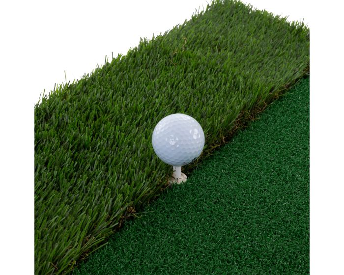 Pure 2Improve Double Turf Måtte er designet til golfspillere, der ønsker variation og kvalitet i deres træningssessioner, uanset om du træner indendørs eller udendørs. Denne dobbelt turf-måtte giver dig to forskellige overflader at slå fra, så du kan simulere forskellige fairway- og tee-oplevelser uden at slide på din græsplæne – eller hvis du slet ikke har en. Med den robuste gummibase står måtten stabilt under hvert slag, hvilket gør den perfekt til både nybegyndere og øvede spillere, der vil optimere deres teknik hjemme eller på driving range.